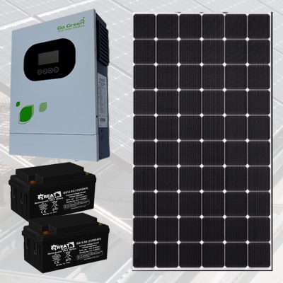 – یک عدد پنل خورشیدی 590 وات – یک عدد سانورتر 1500 وات – دو عدد باتری 65 آمپر ساعت
