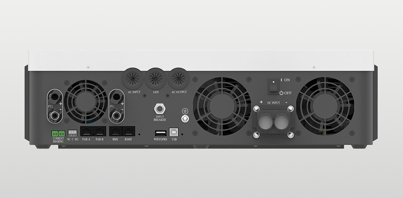 اینورتر/شارژر (سانورتر) 6000 وات برند گرووات با توان خروجی پایدار 6000 وات، مجهز به شارژکنترلر MPPT 100 آمپر 48 ولت و شارژر 80 آمپر از برق شهر است.