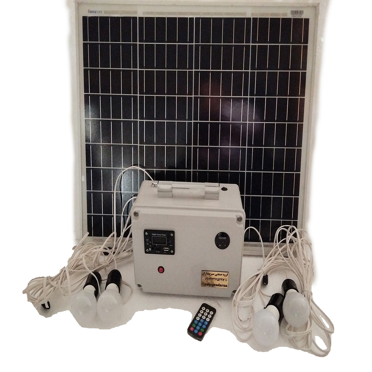 این پکیج خورشیدی دارای پک باتری لیتیوم ایون 16 امپر 12 ولت میباشد. این پکیج دارای یک پنل خورشیدی 50 وات با کابل 5 متری می باشد_یک عدد لامپ ده وات کلید دار با سیم پنج متری و سه عدد لامپ پنج وات با سیم 5 متری _یک عدد لامپ همراه نصب شده روی پکیج قابل استفاده به صورت چراغ قوه ای جهت سرکشی محوطه-یک عدد خروجی درگاه شارژ تلفن همراه با قابلیت فست شارژ – شارز کنترلر 10 امپر نوع mppt با ولتاژ قطع پایین 9 ولت و ولتاژقطع بالای 12.6 ولت میباشد همچنین این پکیج مجهز به رادیو اسپیکر با قابلیت اتصال از طریق بلوتوث، فلش، رم و دارای ریموت کنترل می باشد. رادیو اسپیکر دستگاه مجهز به آمپلی فایر 30 وات جهت حذف نویز صدا و دوعدد بلندگوی 10 وات قوی می باشد. همچنین رادیو مجهز به آنتن تلسکوپی تاشو جمع شونده با حداکثر طول 40 سانتی متر می باشد. همچنین پکیج مجهز به ولت متر دیجیتال جهت نمایش میزان ولتاژ باتری ها میباشد، این پکیج نسبت به پکیج های مبتنی بر باتری خشک دارای وزن سبک تر و ماندگار نور بیشتر میباشد قابل ذکر است باتری های لیتیومی نسبت به باتری های خشک مقاوم تر بوده و ماندگاری شارژ و طول عمر بالاتری دارند.خود دستگاه دارای ۲۴ ماه گارانتی و باتری دستگاه دارای ۱۸ ماه گارانتی می باشد